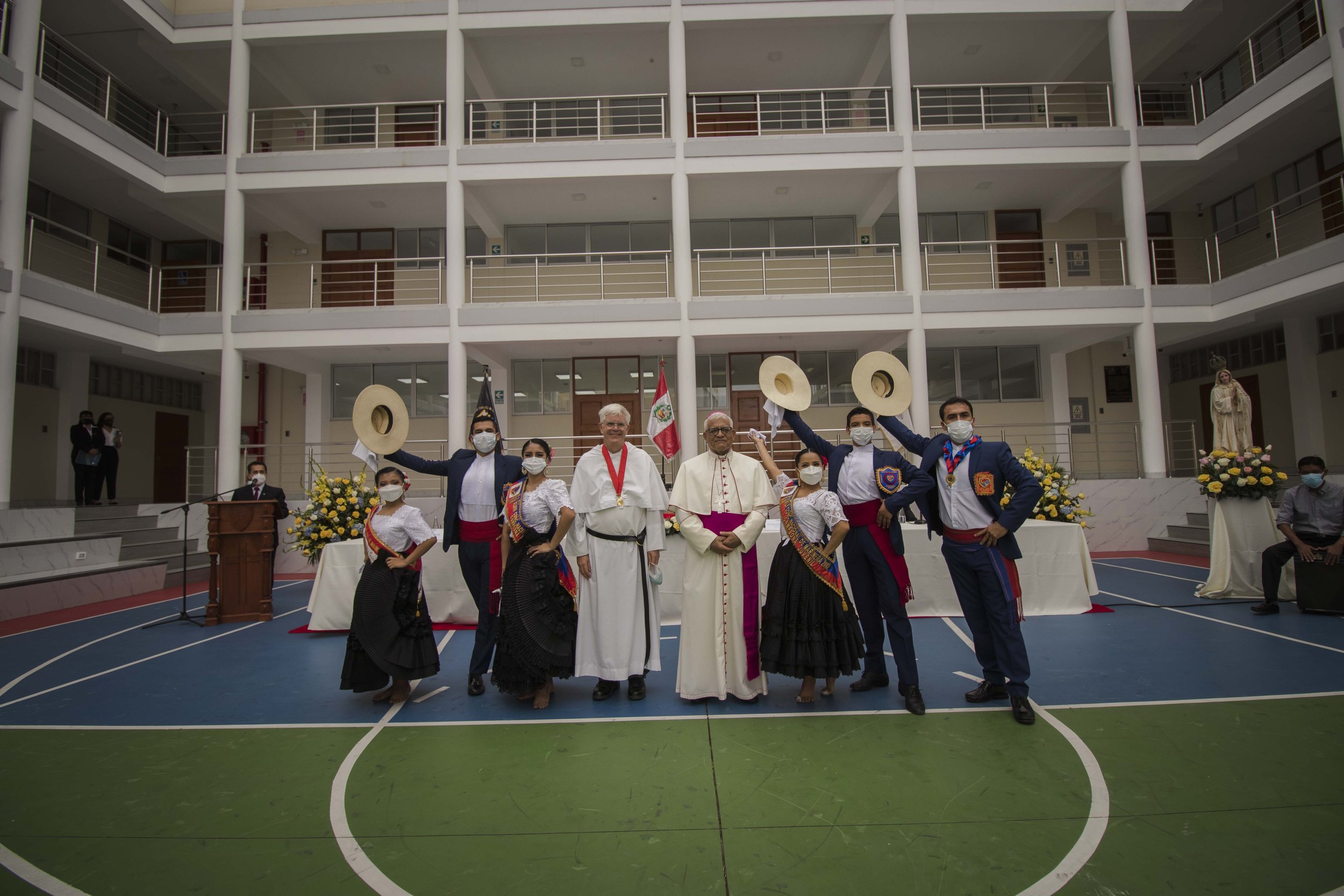 Fr. Lydon then expressed his thanks towards all those present and towards all those that worked in the university with him during these years. Finally, the auxiliary bishop of Trujillo, Francisco Castro (a former student of Fr. Lydon’s) gave the closing toast of honor. The ceremony conclude with several traditional folk dances by students of the university.