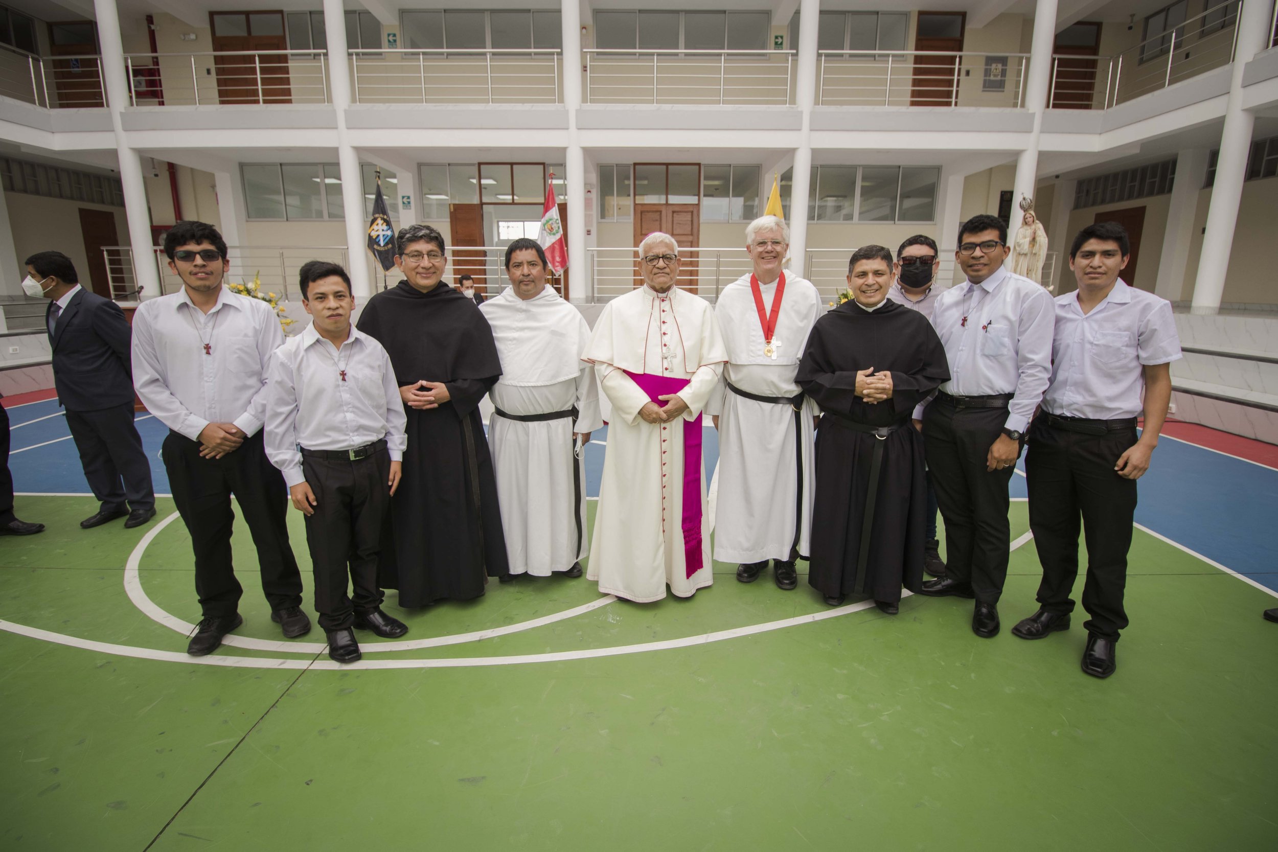 Beginning with a celebration of the eucharist in the chapel of the university before proceeding to an outdoor ceremony, the archbishop of Trujillo began the ceremony conferring on Fr. John the Medal of Santo Toribio (St. Turibius), who is the great missionary archbishop of colonial Peru, and is the patron saint of the archdioceses and of all Latin American bishops. The medal, in the form of a cross, is given by the archdiocese in recognition for special service to the church.
