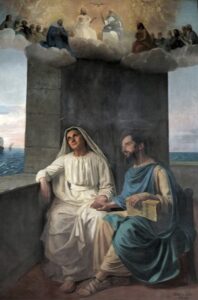 The famous painting of St. Augustine & St. Monica holding hands is based off of the event called ‘The Ecstasy of Ostia’. One afternoon, St. Augustine and St. Monica withdrew from everyone to mediate and pray, and while looking out the window at the sea, they shared a transcendental vision together. In a way, this moment between the two of them was the final ‘real’ conversation that they would have together. How different the energy was between the two of them, as St. Monica moved closer to the veil, unbeknownst to the both them. A lifetime spent spiritual wrangling for the destiny of her son finally comes to a close in this ethereal, touching scene between mother and child.